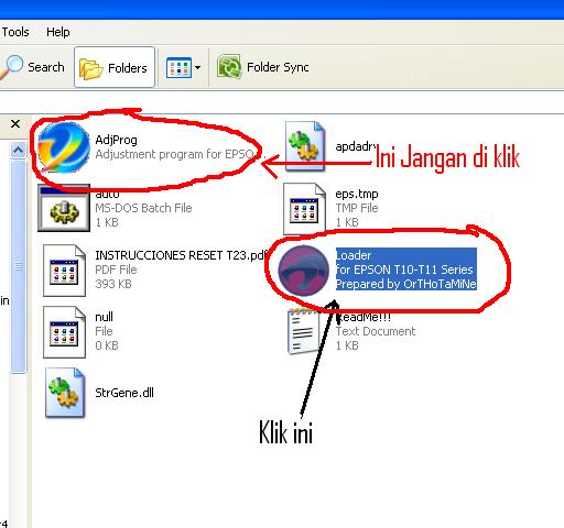 - Buka folder resetter T11 Anda dan Jalankan file Loader.exe. Jangan klik file Adjprog.exe, sebab bisa menyebabkan komputer hang dan software tidak bisa lagi dipakai.
